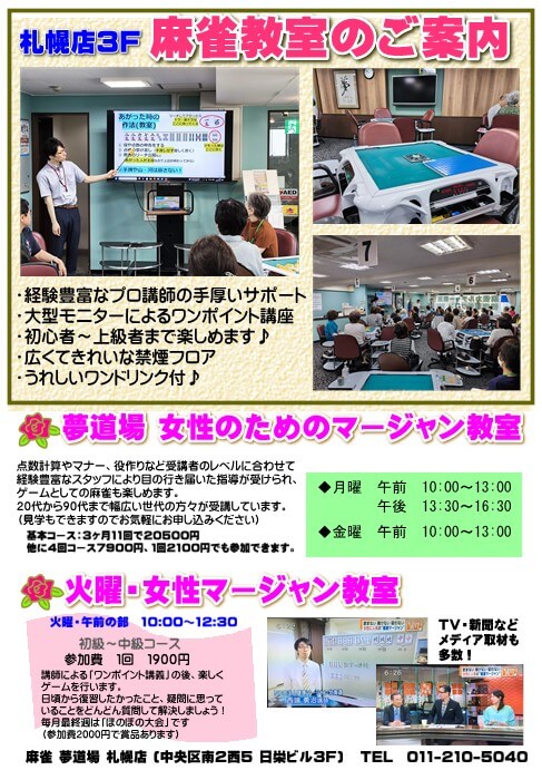 【麻雀夢道場 札幌店3F カルチャーフロア】 (011)210-5040